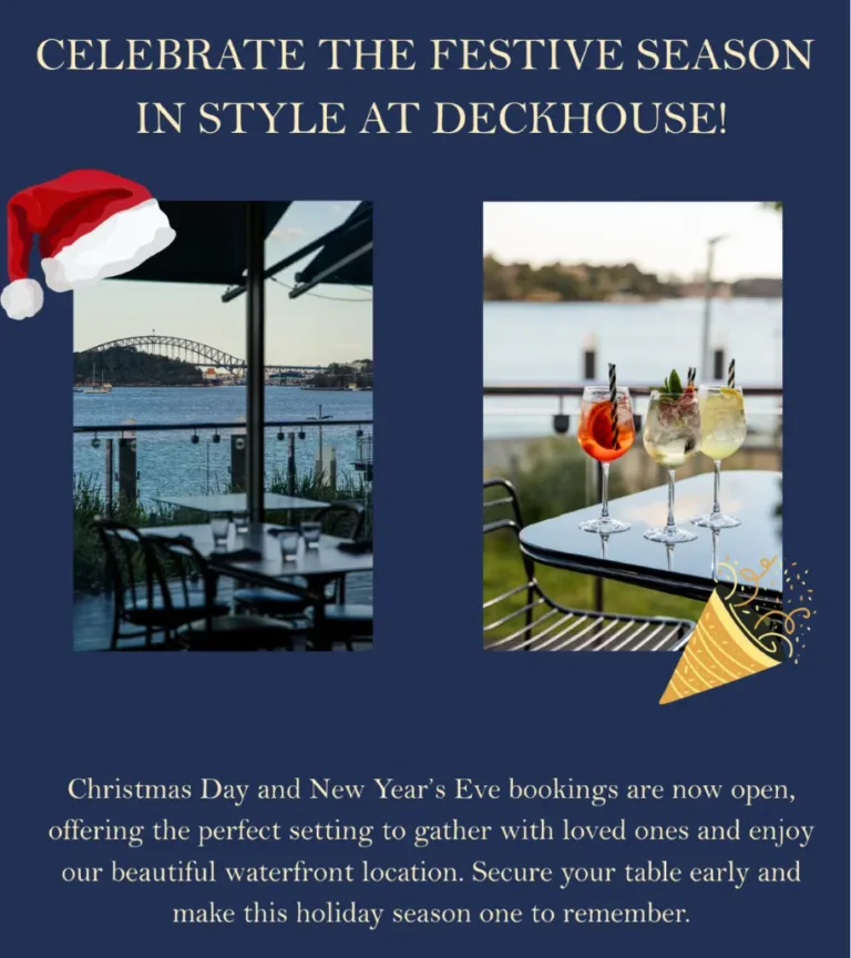 - Ferry: The best option! Take the F3 Parramatta River Ferry from Circular Quay to Woolwich Wharf (around 20 minutes), then enjoy a 5-minute walk to Deckhouse.
